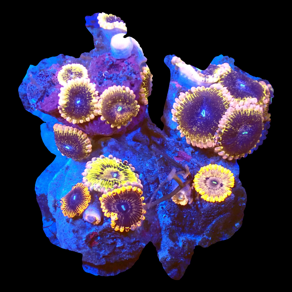 Unique WYSIWYG Zoanthid Ultra Garden coral. One-of-a-kind, exactly what you see! Looking for a real eye-catcher for your reef tank? This unique WYSIWYG coral is an absolute must-have for every serious reefkeeper. No stock photos or surprises – what you see is exactly what you get. And what you get is spectacular.