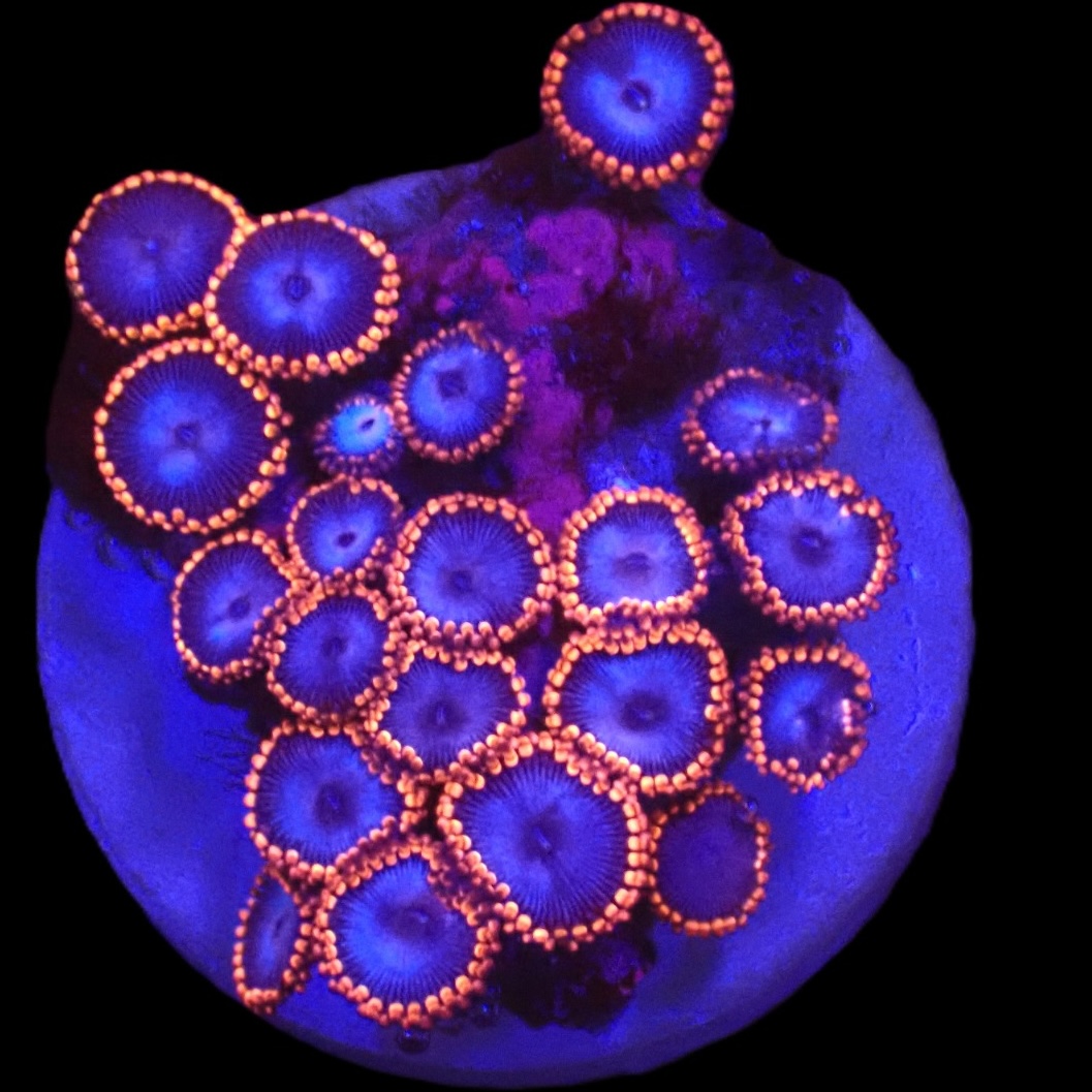 126781608 A zoanthus garden Ultra is a mix of different beautiful Ultra colored zoanthus / button polyps. Beautiful, composite zoanthus gardens with a diameter of approximately 10 cm, with beautiful...