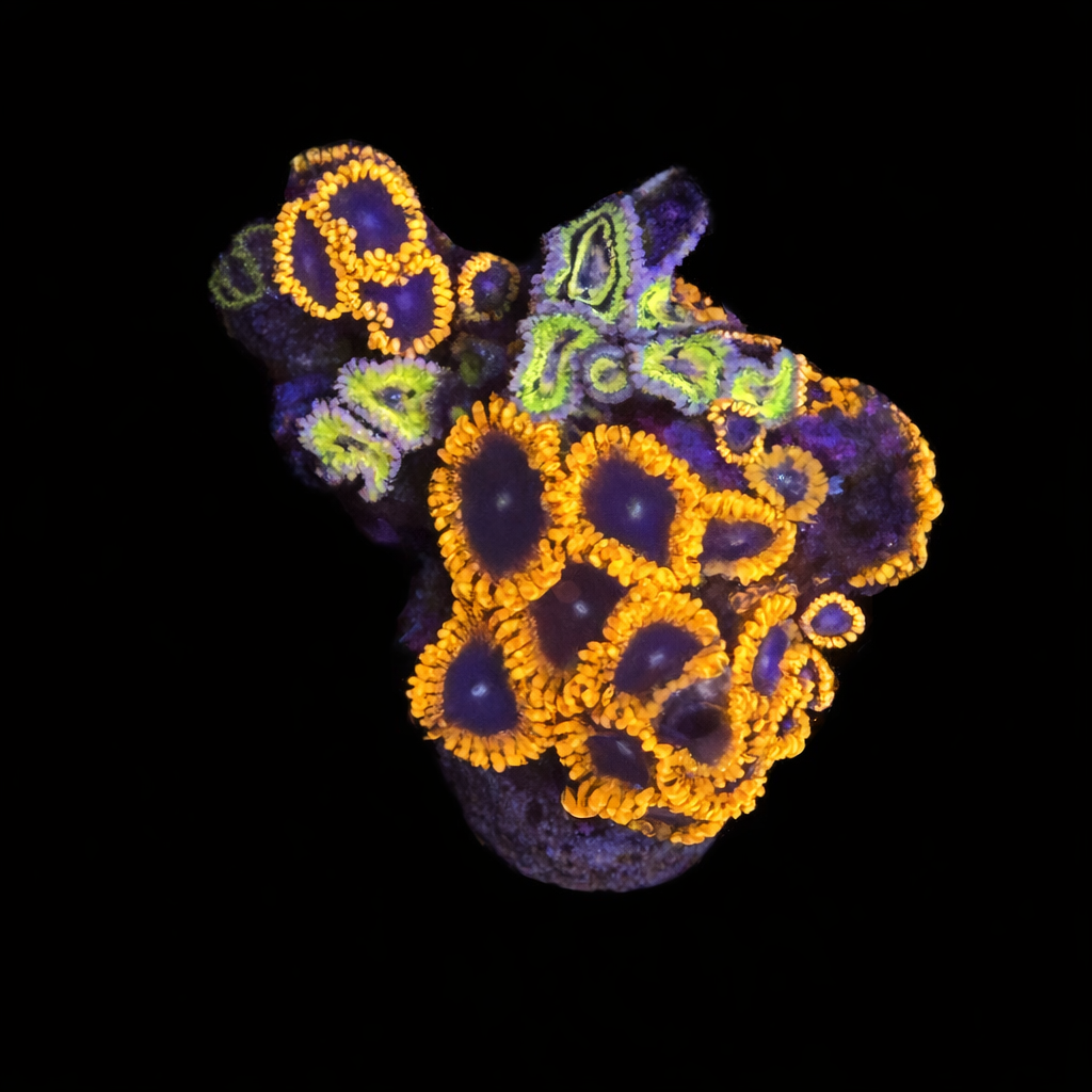 Unique WYSIWYG Zoanthus Ultra Garden with Stratocaster coral. One-of-a-kind, exactly what you see! Looking for a real eye-catcher for your reef tank? This unique WYSIWYG coral is an absolute must-have for every serious reefkeeper. No stock photos or surprises – what you see is exactly what you get. And what you get is spectacular.
