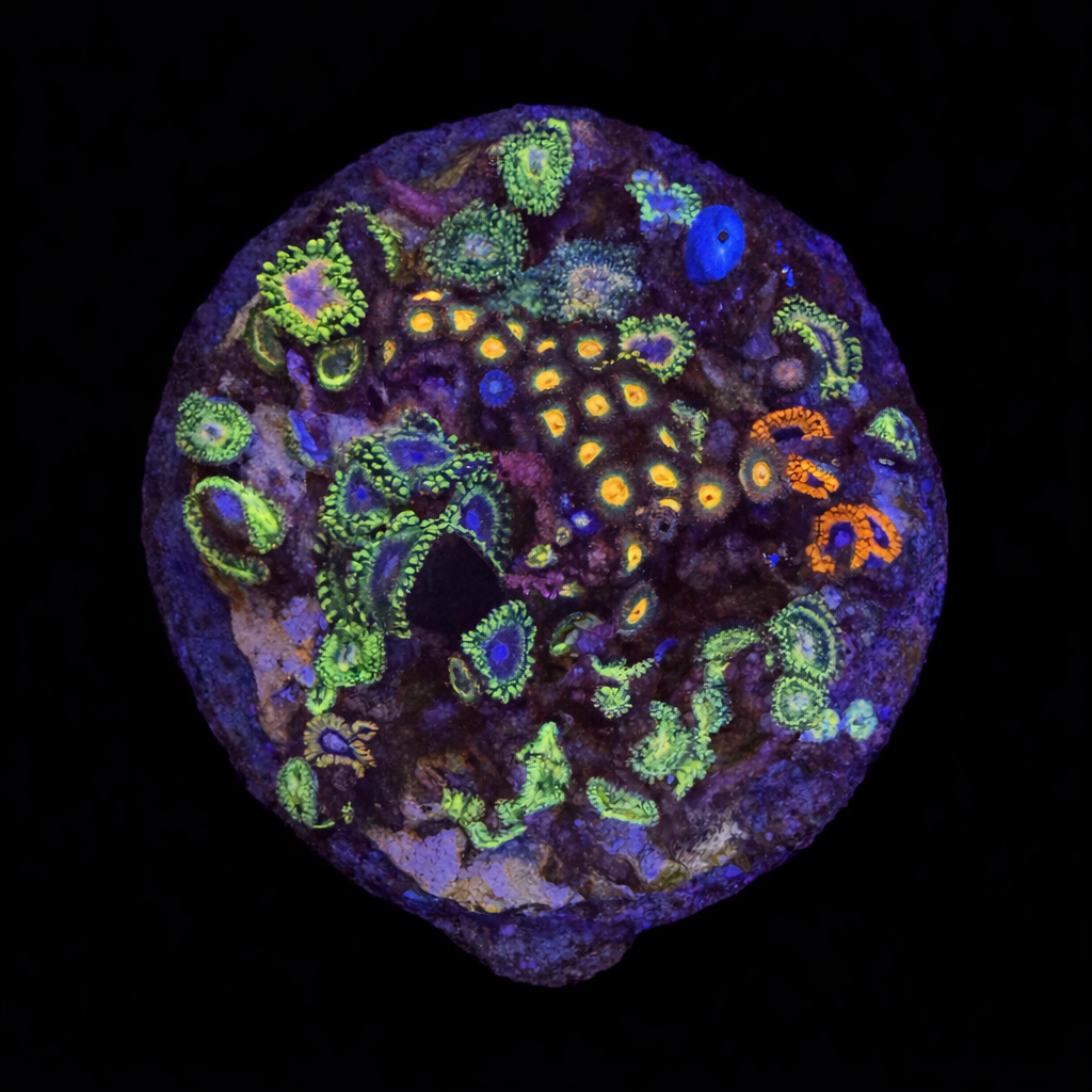 Unique WYSIWYG Zoanthus Ultra Garden coral. One-of-a-kind, exactly what you see! Looking for a real eye-catcher for your reef tank? This unique WYSIWYG coral is an absolute must-have for every serious reefkeeper. No stock photos or surprises – what you see is exactly what you get. And what you get is spectacular.