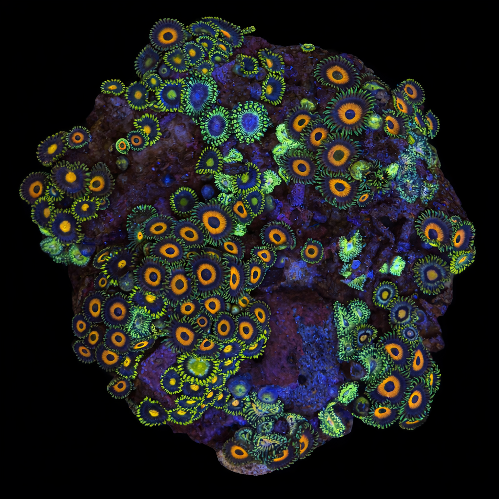 Unique WYSIWYG Zoanthus Ultra Garden coral. One-of-a-kind, exactly what you see! Looking for a real eye-catcher for your reef tank? This unique WYSIWYG coral is an absolute must-have for every serious reefkeeper. No stock photos or surprises – what you see is exactly what you get. And what you get is spectacular.